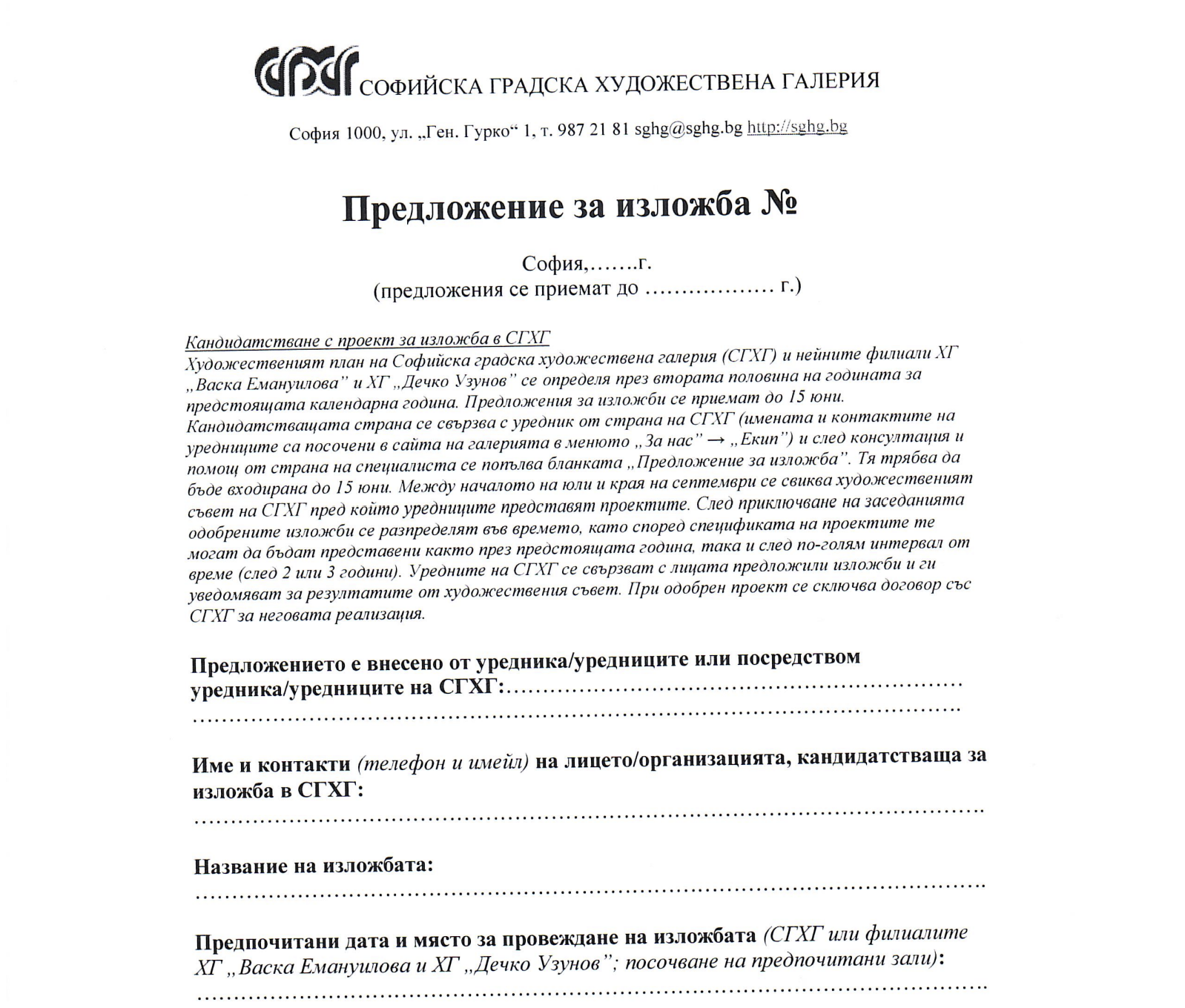 Формуляр - Предложение за изложба